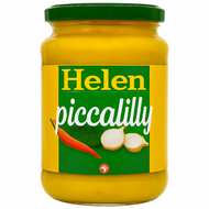 Helen Piccalilly is een pittige en lichtzure saus die veel wordt gebruikt in Surinaamse keukens en is gemaakt van mosterd en fijn gemalen zure groenten. Het product wordt vaak geserveerd als smaakmaker bij rijstgerechten, broodjes, gegrilde gerechten en snacks en als ingredient voor pom. De combinatie van kruidige groenten en milde zuurte maakt het geschikt als tafelcondiment in huishoudens, afhaalkeukens en lokale eethuizen. In Suriname staat piccalilli bekend als een veelzijdige toevoeging die gerechten een extra aroma geeft.