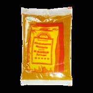 Beste kwaliteit Hindoestaanse kerrie masala. Lekker kerrie kruiden voor o.a. roti's. Masala (betekent kruidenmix) is een specerijenmengsel dat gebruikt wordt om Indiase en Surinaamse gerechten mee op smaak te brengen. Het bestaat onder andere uit kurkuma, koriander, komijn en peper. Overheerlijk en niet te missen bij uw masala gerechten. Hierbij wat recepten van Nandan zelf. Broodje Kip Kerrie 400 gr Kipfilet 1 Ui 2 Teentjes knoflook Zonnebloemolie Maggi blokjes Zwarte peper 1 EL tomatenpuree 2 EL H. Nandan Masala 4-6 Surinaamse puntjes Komkommer in Azijn Optioneel Madam Jeanette Bereidingswijze 1. Snijd de kipfilet in blokjes. Snipper de ui en hak de knoflook fijn. 2. Verhit een braad- of koekenpan en fruit de ui en knoflook in een scheut zonnebloemolie. Verkruimel de maggi blokjes erboven en voeg een snufje zwarte peper toe. Roer daarna 1 minuut de tomatenpuree mee. 3. Voeg de kip toe samen met 2 afgestreken eetlepels H. Nandan masala (of gewoon een volle eetlepel) en bak rondom bruin aan. Zet het vuur lager en schenk 100 ml heet water in de pan. Laat vervolgens 15 – 20 minuten pruttelen op laag vuur met de deksel schuin op de pan. Roer regelmatig door. 4. Snijd vlak voor serveren de broodjes doormidden en grill de binnenkanten even in een grillpan. Beleg ze naar eigen inzicht met de kip (inclusief een beetje saus), zuurgoed en sambal. Roti lams: Ingrediënten: 500 gr Lamsvlees 4 teentjes Knoflook 1 Ui 1 Madame jeanette peper 4 EL H. Nandan Masala Olie 600 gr Aardappel 1 Bouillon blokje 4 Gekookte en gepelde eieren Kousenband Rotivellen Bereidingswijze: 1. Snij het vlees in stukken en snipper de knoflook en ui. Doe deze vervolgens in een kom en meng dit samen met H. Nandan Masala. Laat in de tussentijd de olie warm worden in een wok pan op een laag vuurtje. 2. Doe het vlees in de pan en bak het vlees ongeveer 10 minuten tot het lichtbruin wordt. Voeg water toe en laat het bouillonblokje oplossen. Hierna voeg je een hele peper ( zorg ervoor dat de peper niet breekt) toe. 3. Voeg de gesneden aardappelen toe en laat alles koken in de pan. Laat het geheel ongeveer 20 minuten stomen op een laag vuurtje tot alles gaar is. 4. Hierna snij je de kousenband in kleine stukjes. Schenk een eetlepel olie in een wokpan en verwarm dit op een laag vuurtje. Voeg hierna een teentje gesnipperde knoflook toe en bak dit in de pan aan. Doe de kousenband nu in de pan op een laag vuurtje. En laat dit voor een minuut of 10 bakken naargelang je smaak. 5. Pak de rotivellen erbij. Je kunt de rotivellen zelf maken maar je kunt ze ook kant en klaar kopen. Leg de rotivellen op de borden. Doe het lamsvlees en kousenband ernaast, en om het af te maken een eitje erbij.